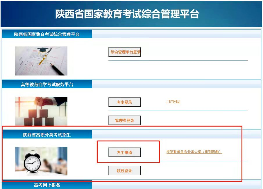 01 报名参加2024年普通高职招生考试的普通高中毕业生(以下简称“普高生”)。 02.报名参加2024年陕西省普通高校职业教育单独招生考试的中等专业学校、职业高中、技工学校毕业生(简称“三校生”)。 1.网上申请:拟申请我院的考生,请于2024年3月15日9:00-3月18日17:00登录陕西省教育考试院门户网站(www.sneea.edu.cn)或陕西招生考试信息网(www.sneac.com)申请我院。(在陕招生代码:8147)。